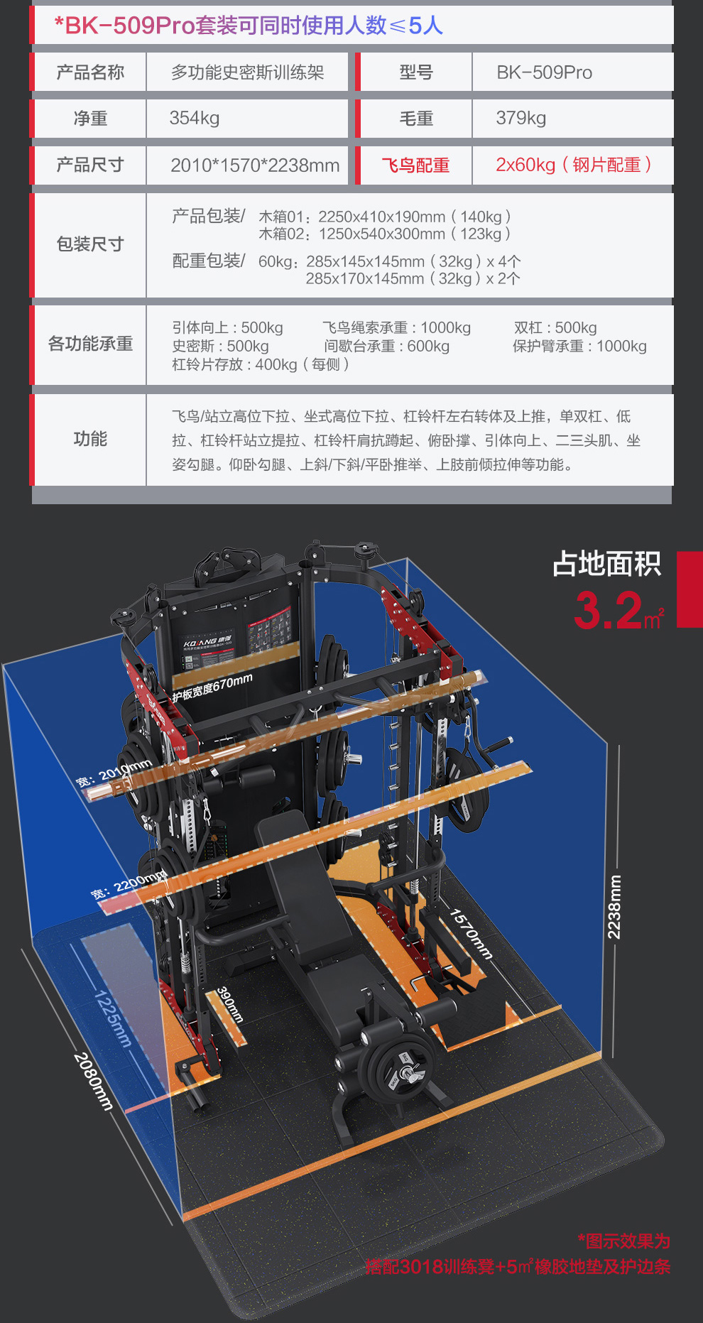 必一运动BK509PRO专业版 多功能史密斯机 综合训练器健身器材龙门架举重床深蹲卧推