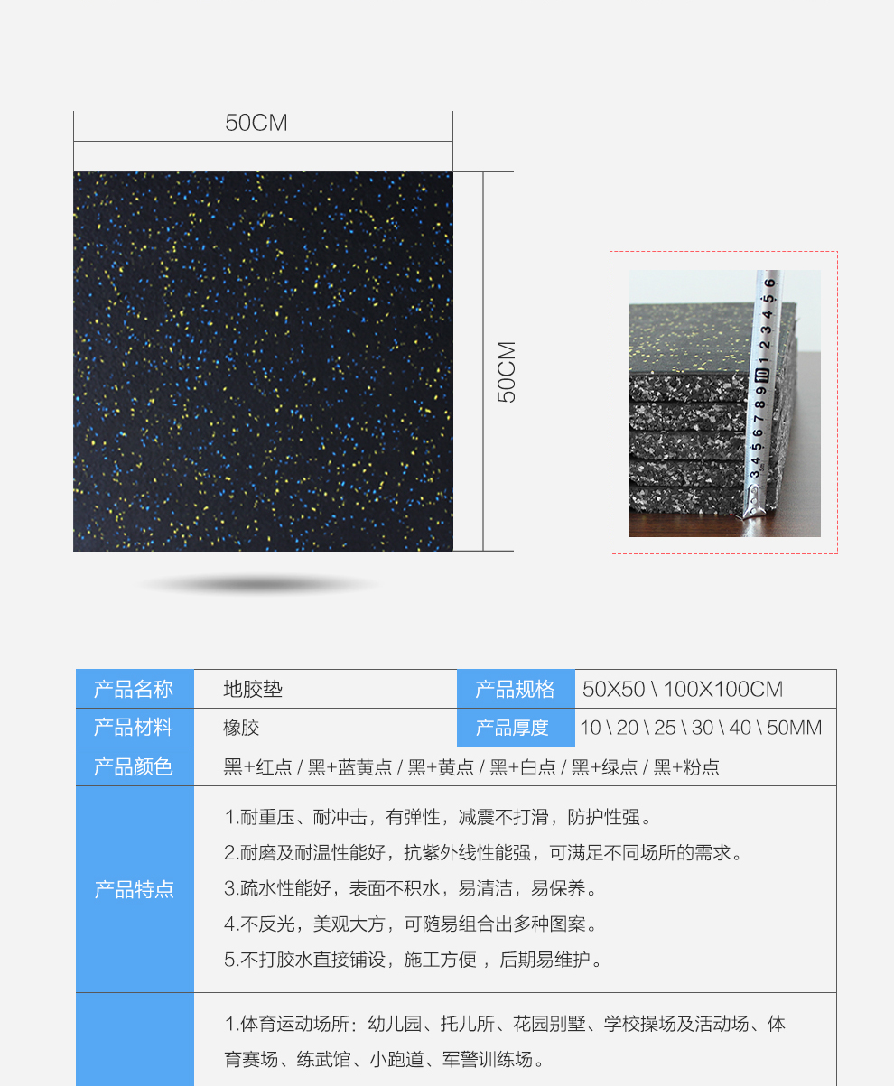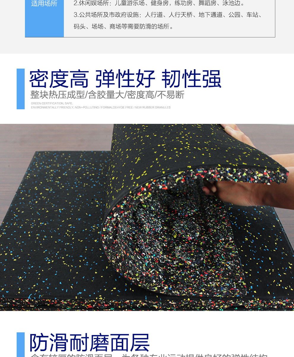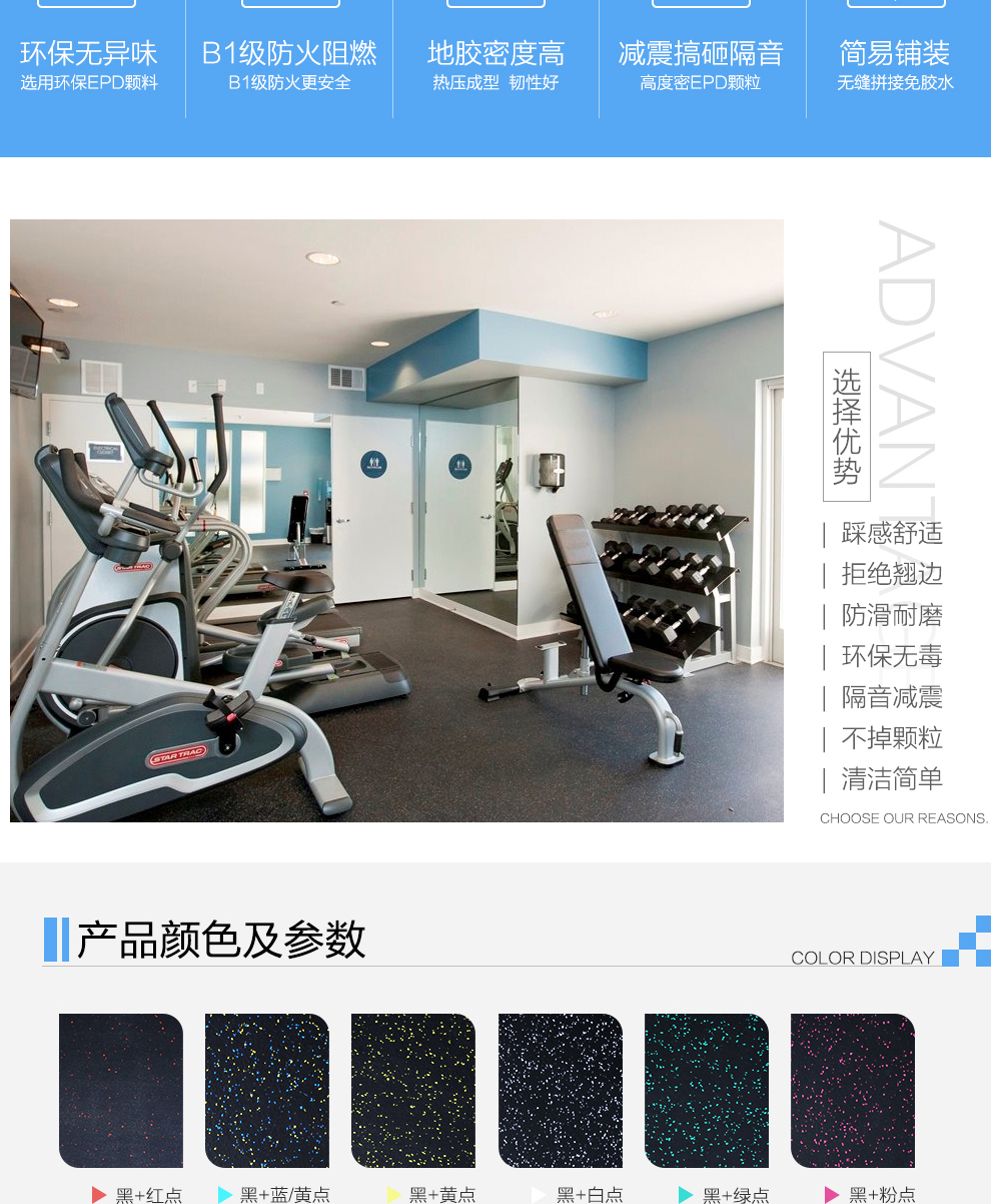 必一运动复合环保材质橡胶地垫运动地垫室内缓冲地板健身器材力量区专用拼接垫子(12块起拍)