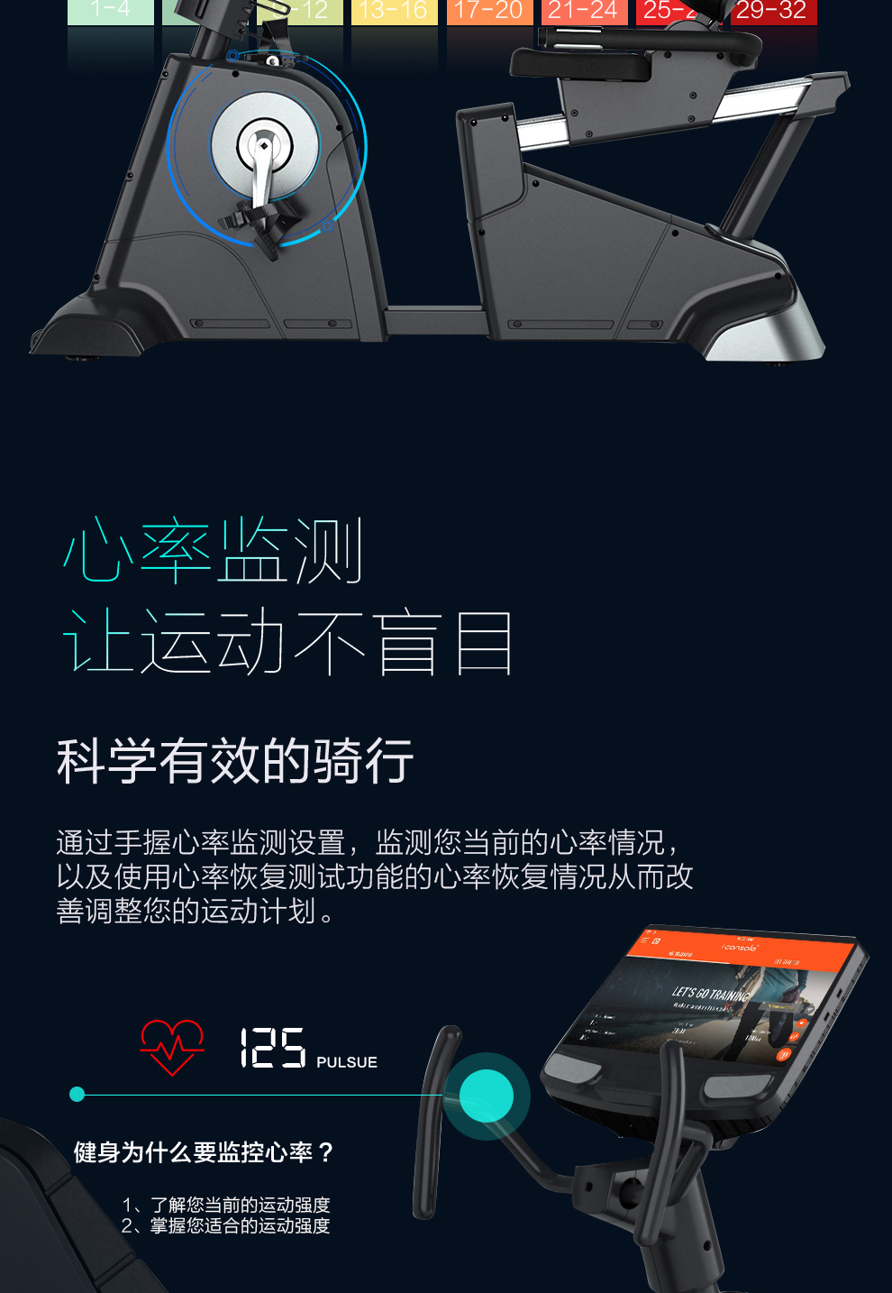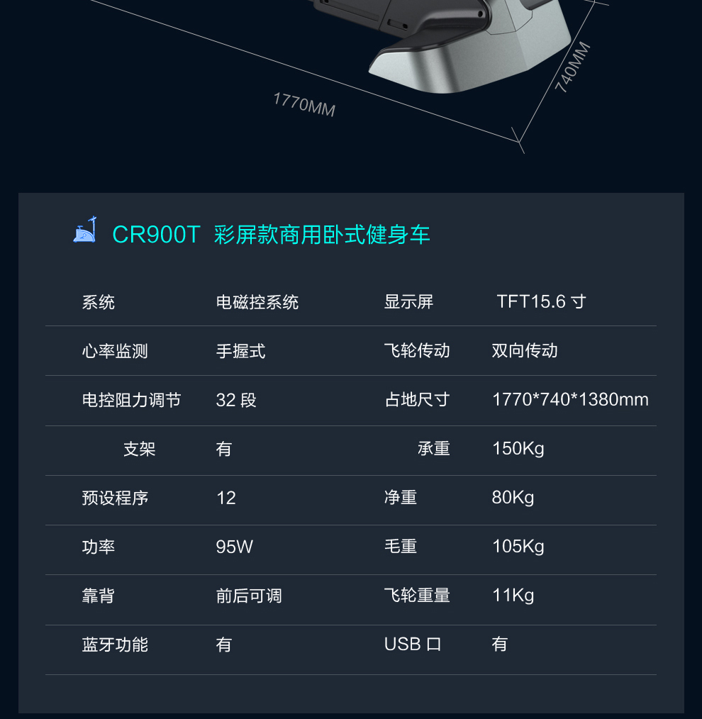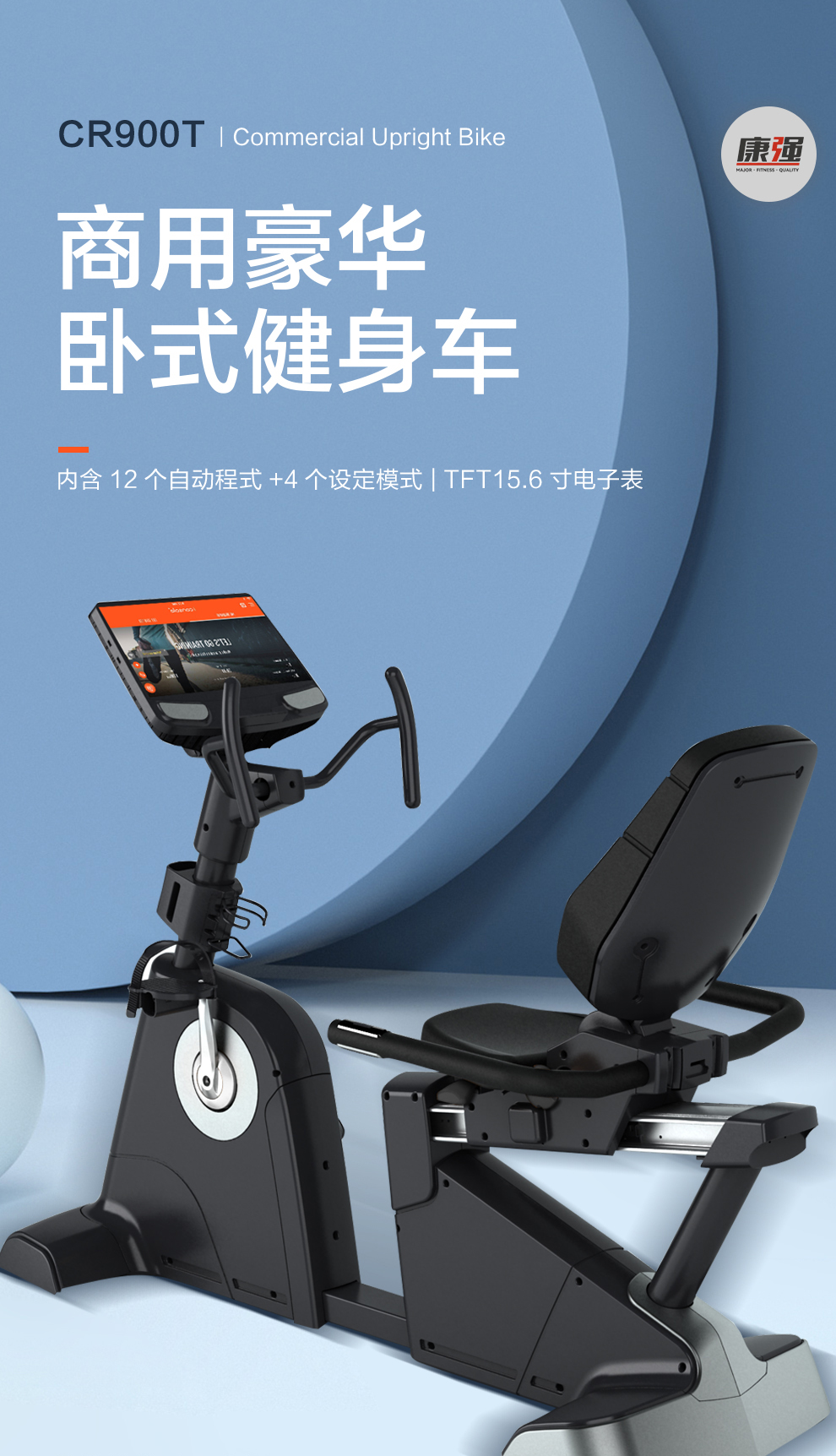 必一运动商用卧式单车CR900T磁控车自发电健身车健身房专用