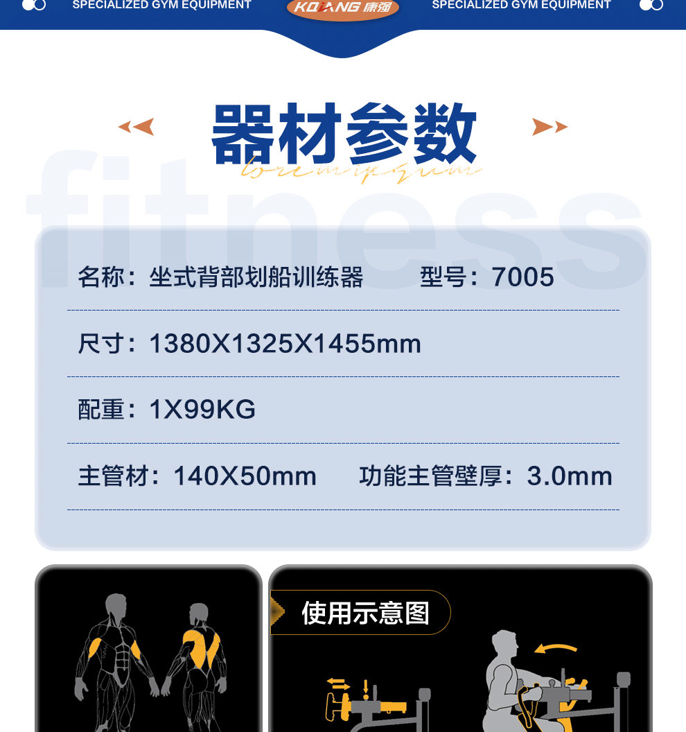 | 型号 | 坐式背部划船训练器7005 | ||