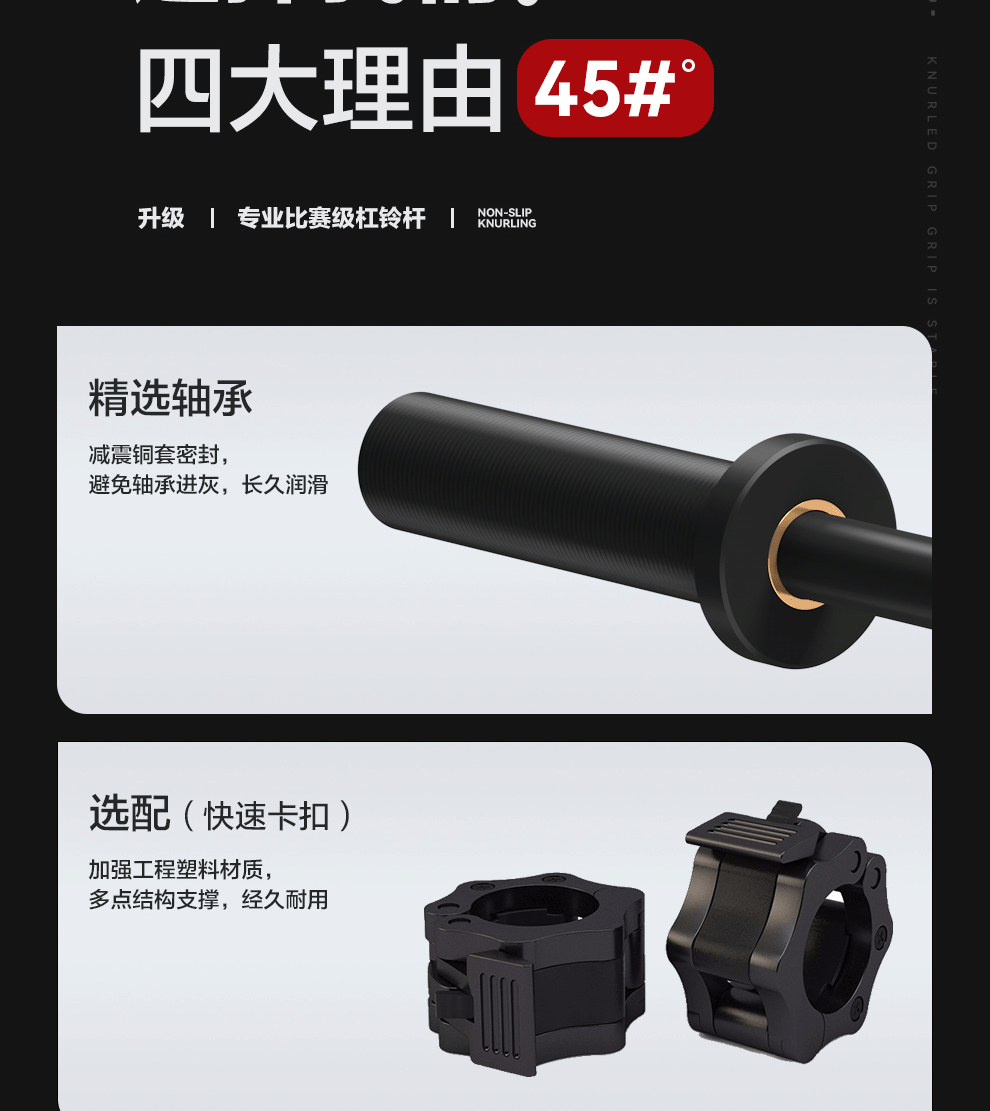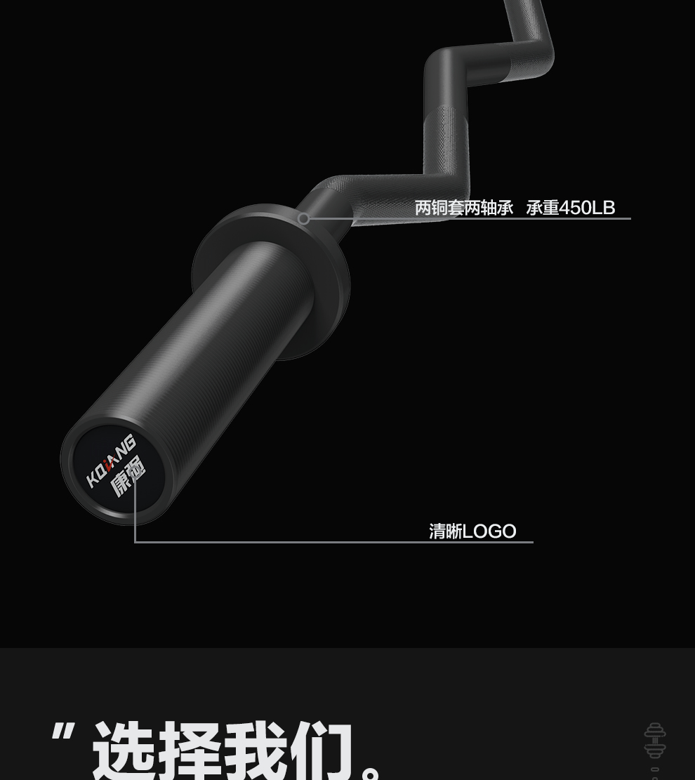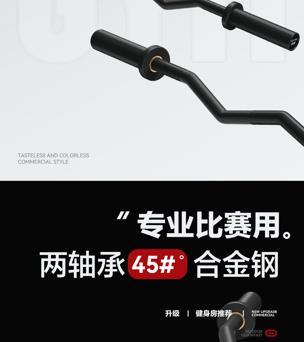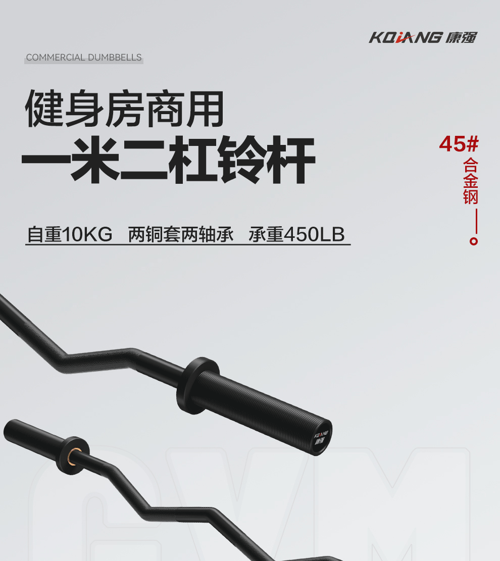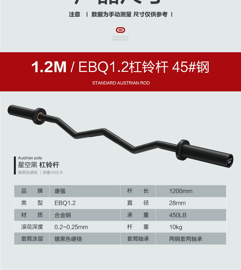 必一运动1.2M曲奥杆两铜套轴承重10KG举重杠铃杆卧推健身器材EBQ1.2