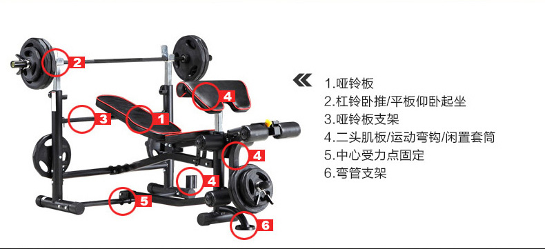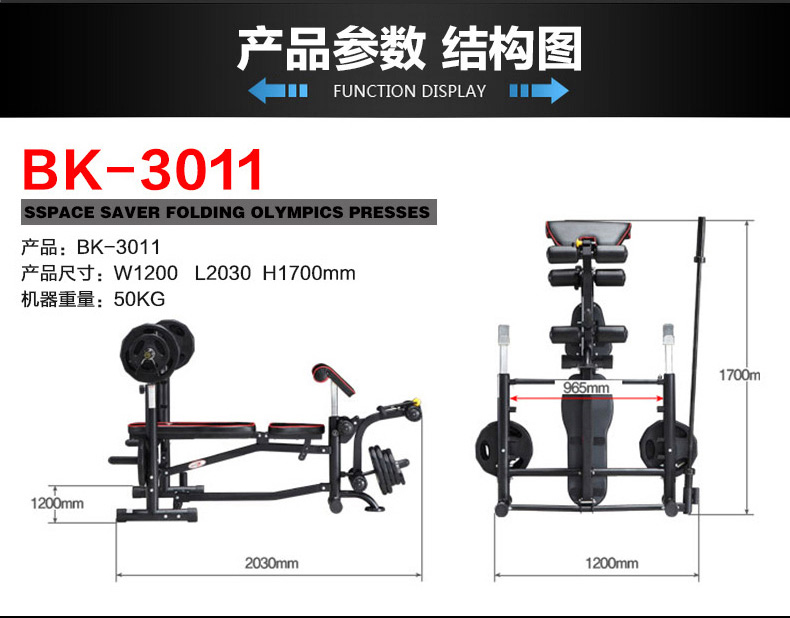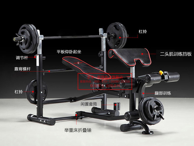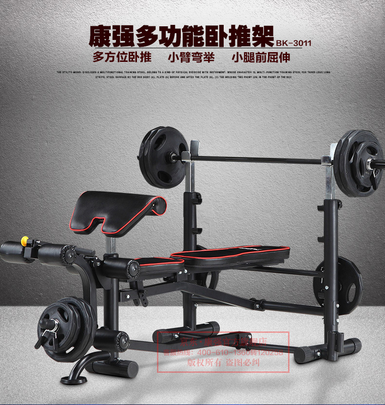 必一运动 BK3011多功能卧推架举重床综合训练器健身器材 BK3011+60KG杠铃片+1.8米杆